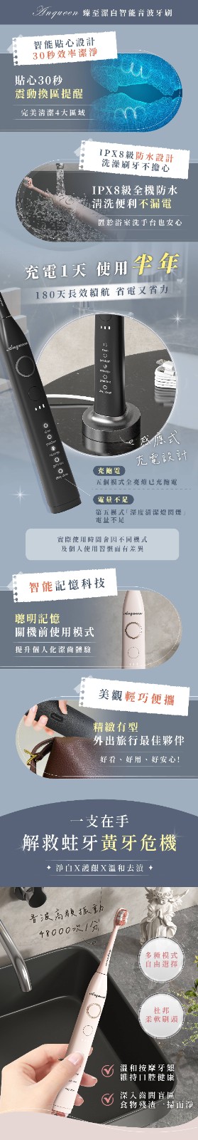 15分鐘前微笑從齒開始!Anqueen安晴臻至潔白智能音波電動牙刷AQ-B101 - 黑色款